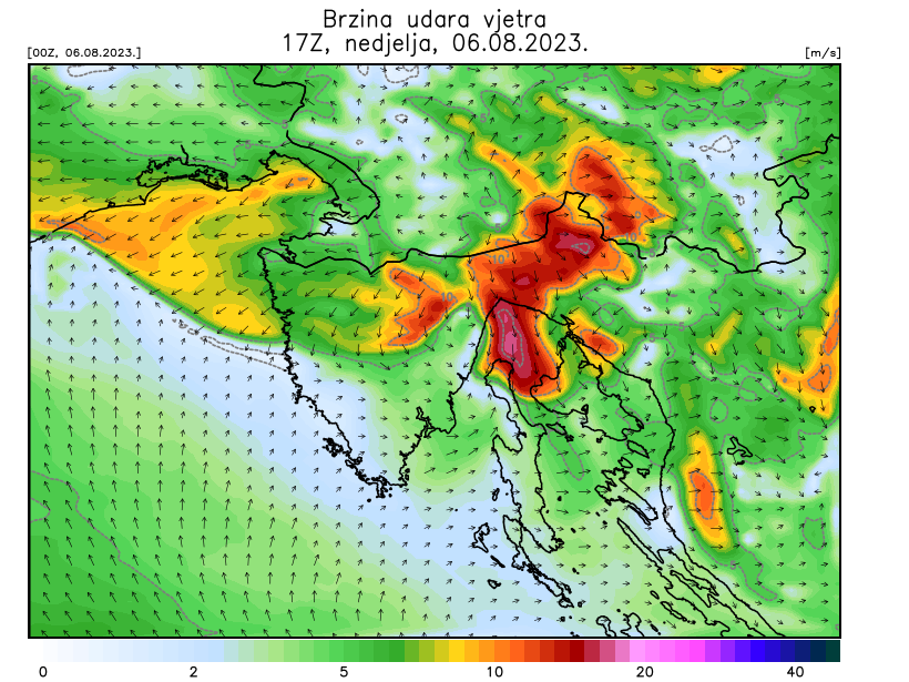 Sve bi trebalo započeti negdje iza 19 sati uz jačanje bure, koja će imati olujne udare, a zatim okrenuti na sjeverozapadnjak.