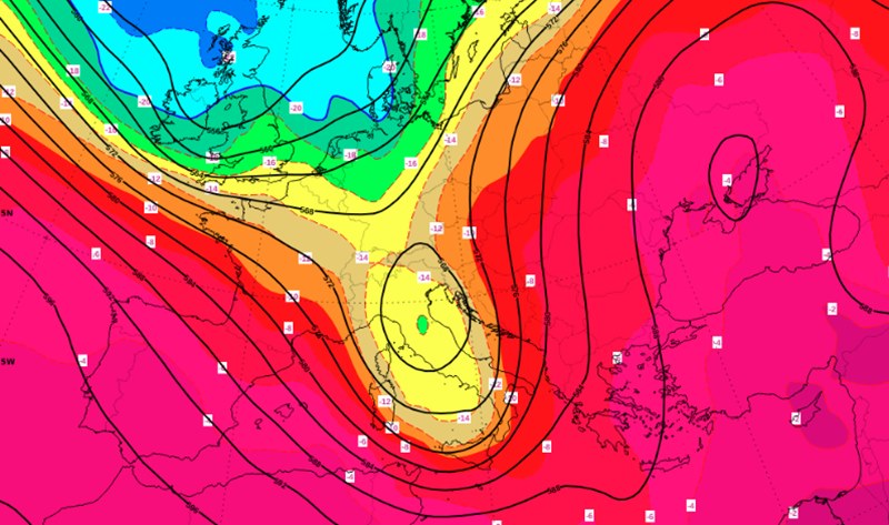 U petak, (4. kolovoza 2023.) preko Hrvatske će se premjestiti plitka ciklona i frontalni poremećaji s kojima će na zagrijanu podlogu doći veća količina vlažnog i hladnijeg zraka. Izražena dolina u polju geopotencijala približava se iz zapadne Europe preko Slovenije prema Hrvatskoj.