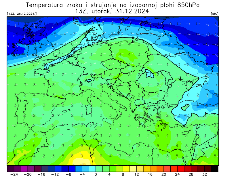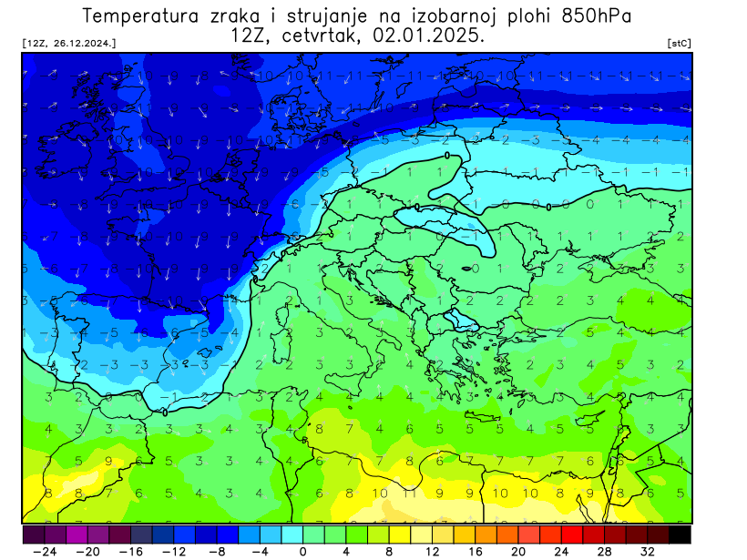 U prvim danima Nove godine, izgledno je postupno pogoršanje vremena. Iako nam prema svemu sudeći ponovno stiže prodor sa sjeverozapada koji često završi snijegom jedino u gorju, ne smije se isključiti ni mogućnost jače fronte koja bi snijeg donijela i nižim krajevima, o čemu ćemo više pisati u idućim danima. (P.R./IM).