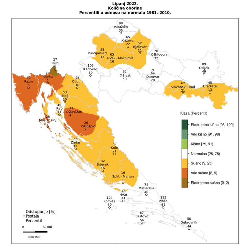 Na 20 glavnih meteoroloških postaja DHMZ-a lipanj 2022. bio je drugi najtopliji od 1961. godine dok je na ostalim postajama bio među 4 najtoplija. Pored visokih temperatura, u lipnju su na području sjevernog Jadrana i Gorskog Kotara prevladavale i sušne prilike.