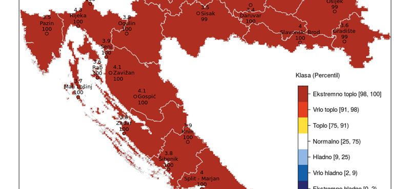 Temperaturne prilike u lipnju 2022. bile su ekstremno tople na čitavom teritoriju s temperaturama koje su bile 3,0 – 4,3 °C više od prosjeka za razdoblje 1981.-2010. Prema anomalijama srednje temperature zraka u odnosu na prosjek, na meteorološkim postajama Zadar, Lastovo, Ploče i Slavonski Brod, ovogodišnji lipanj je bio najtopliji od kada se provode mjerenja, izvijestio je DHMZ.