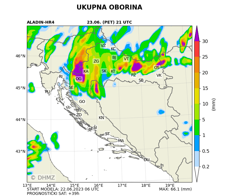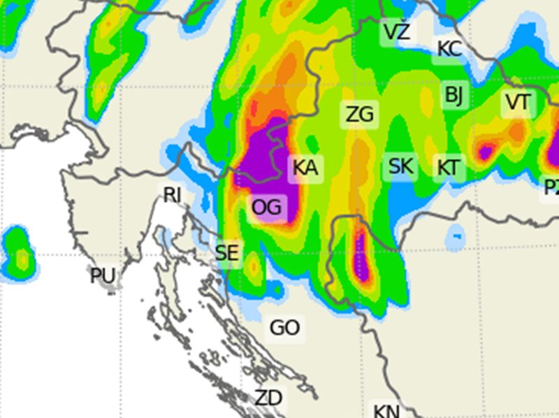 Kao što možemo vidjeti na priloženim meteorološkim kartama, glavnina razvoja olujnih sustava, a samim time i oborina očekuje se od zaleđa Rijeke do Slavonije.