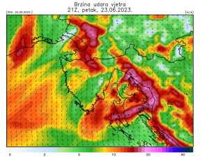 Nakon fronte temperature zraka snizit će se za oko 5 °C, a zapuhat će bura. U danima iza očekuje nas pravo ljeto uz temperature zraka bliže prosjeku za doba godine, ali bez velikih vrućina. (P.R./IM).