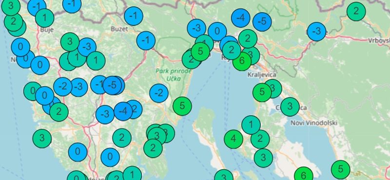 Najhladnije je bilo u Pazinu uz -4,9 °C, međutim i drugdje u središnjoj Istri temperature su se snizile ispod -4 °C. Iako je u drugom dijelu noći došlo do blagog zatopljenja, šteta od mraza će zasigurno biti.