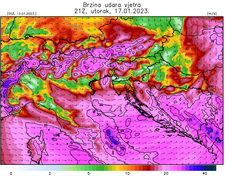U takvoj sinoptičkoj situaciji poseban naglasak bit će na vjetru, a u kombinaciji s niskim tlakom zraka moglo bi biti problema s plimom. Današnji modeli krajem utorka predviđaju olujne udare vjetrova trećeg kvadranta, naročito u srednjem Jadranu. U idućim danima detaljnije ćemo popratiti razvoj ove situacije.