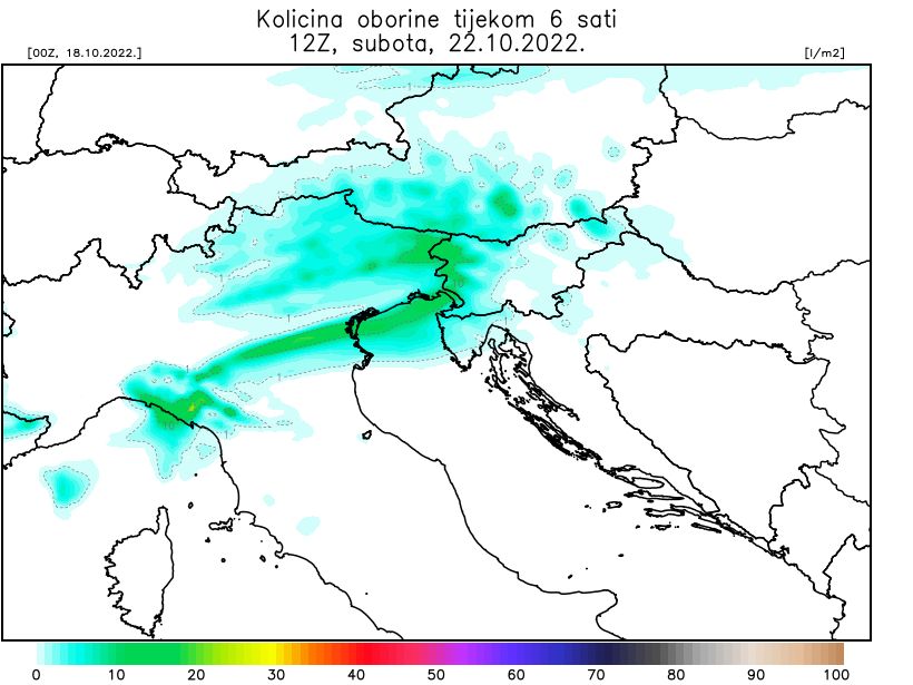Prema jutrošnjim prognostičkim modelima u petak će zapuhati jugo, što je uvod u nešto promjenjiviji vikend. Očekivane količine oborina su male, međutim modeli vide i nešto konvektivne aktivnosti, stoga nas ne bi trebali iznenaditi lokalni pljuskovi, naročito u unutrašnjosti Istre i oko Učke.