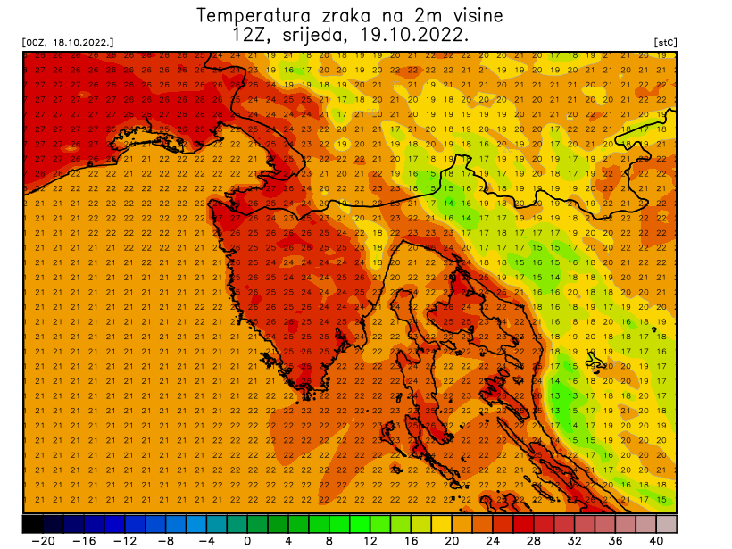 I idućih dana nastavlja se toplo vrijeme, a vrhunac babljeg ljeta prema svemu sudeći nastupit će sutra kada bi se temperature zraka mogle popeti i do 27 °C. Puhat će slab vjetar promjenjivog smjera, što će pogodovati razvoju jutarnje magle, međutim ona će se razmjerno brzo razići.