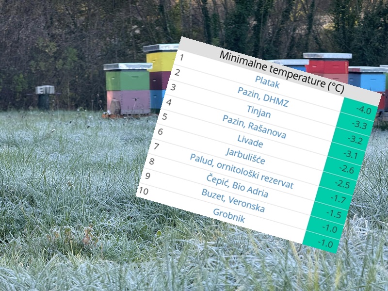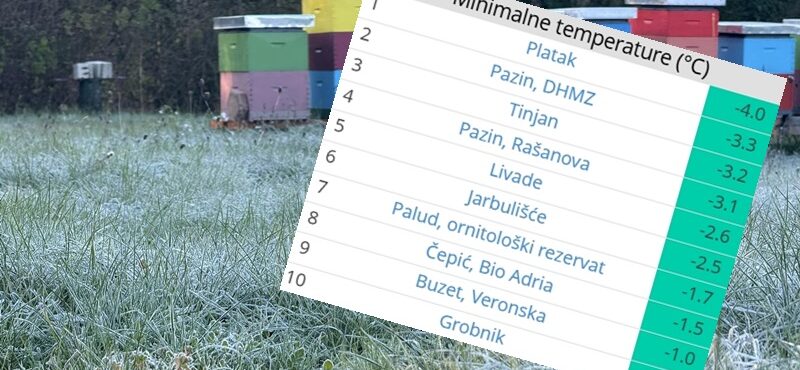 Izuzev gorja, središnja Istra jutros je bila najhladnija u Hrvatskoj. Hladnije je bilo samo u višem gorju (Zavižan -5,8 °C, Platak -4,0 °C).