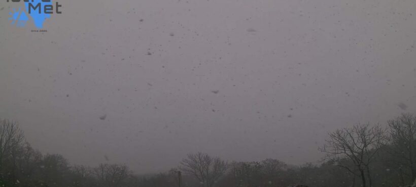 S postupnim padom temperature zraka, nešto nakon 11 sati na Učki je počeo padati snijeg, a snježne pahulje šire se i Ćićarijom.