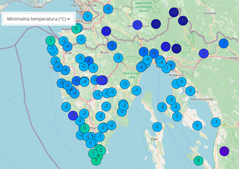 U Pazinu je bilo -8,7 °C, dok se u ostatku središnje Istre temperatura zraka uglavnom kretala od -6 °C do -3 °C. Naročito hladno bilo je i na Poreštini. Naša postaja u Poreču izmjerila je čak -5,6 °C, dok su u zaleđu temperature bile još i niže.