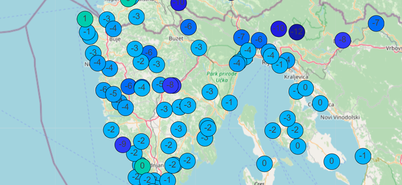 U Pazinu je bilo -8,7 °C, dok se u ostatku središnje Istre temperatura zraka uglavnom kretala od -6 °C do -3 °C. Naročito hladno bilo je i na Poreštini. Naša postaja u Poreču izmjerila je čak -5,6 °C, dok su u zaleđu temperature bile još i niže.
