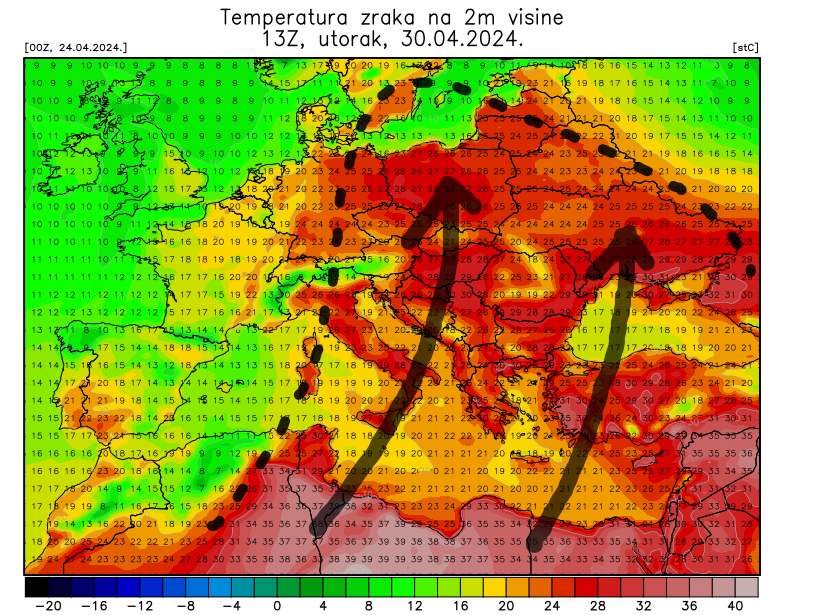 Zatopljenje će biti izraženije na istoku Hrvatske te u Srbiji gdje bi vrijednosti ponovno mogle dostići ljetnih 30 °C. Izraženo zatopljenje očekuje velik dio srednje i istočne Europe, a vrućine bi mogle doprijeti i do juga Ukrajine. Izraženo zatopljenje osjetit će se i na jugu Skandinavije.