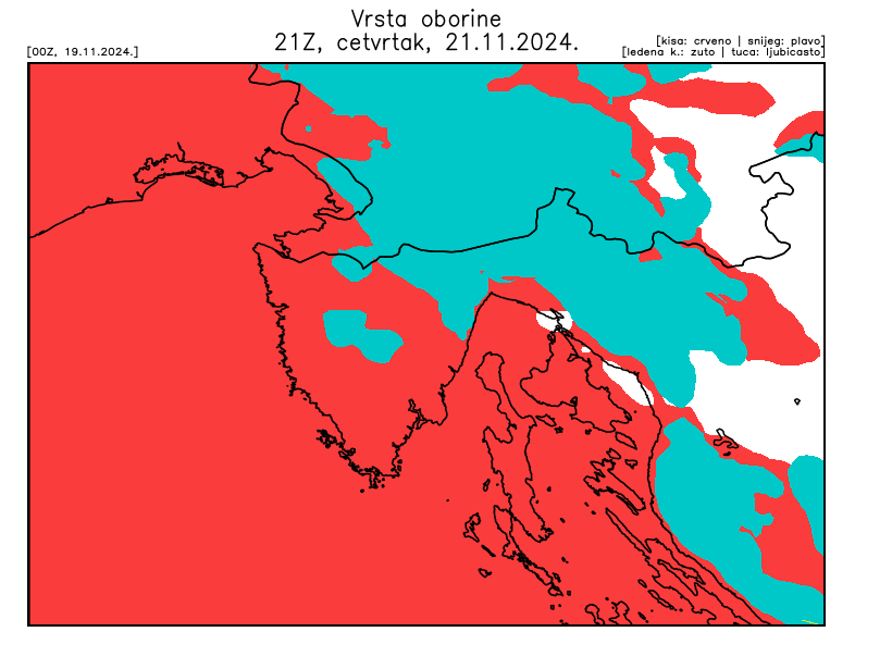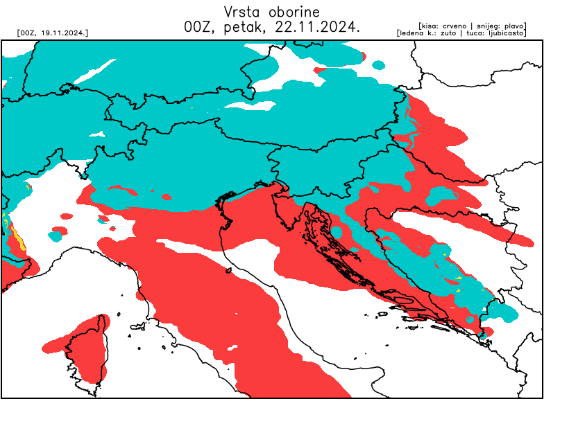 U četvrtak navečer oborine će početi u obliku snijega u većem dijelu gorja, ali i ponekim nizinama. Međutim, s produbljivanjem ciklone na sjeveru Italije, u jakom jugozapadnom strujanju stići će značajno topliji zrak, što će uzrokovati okretanje snijega na kišu čak i u višem gorju. U početku bi snijega nisko moglo biti i na istarskom području, međutim snježna granica brzo će se podignuti, stoga će kiša padati čak i na vrhu Učke!