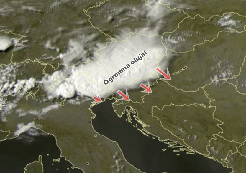 Postoji velika vjerojatnost kako će olujni sustav “preživjeti” Sloveniju i ući u Hrvatsku gdje u idućim satima također može biti jačeg nevremena. Ne preostaje nam ništa nego li pratiti radarske i satelitske snimke.