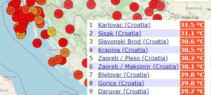 Tamo gdje travanjski rekordi nisu oboreni u posljednjih 15-ak godina, oboreni su danas. Rekorder je svakako Karlovac gdje je zabilježeno vrućih 31,5 °C.