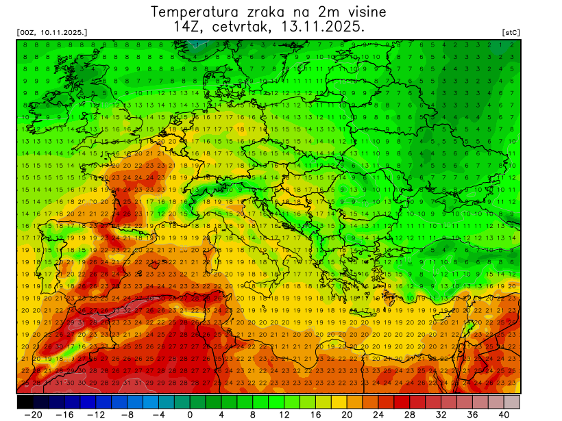 Pirenejski poluotok i dio Francuske u početku očekuje izraženo zatopljenje, a zatim stižu fronte i obilne kiše. Istovremeno, na sjever Europe stiže prva značanija pošiljka hladnog zraka. (P.R/IM).