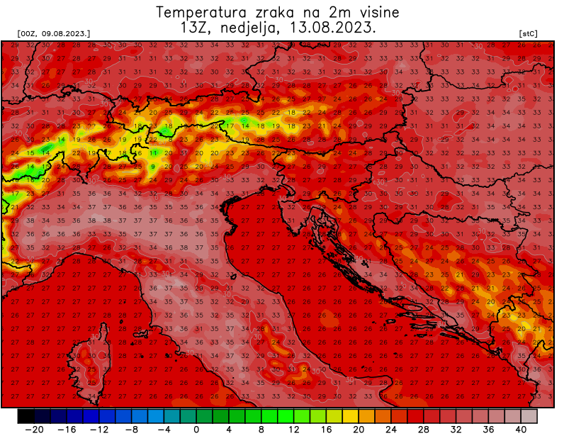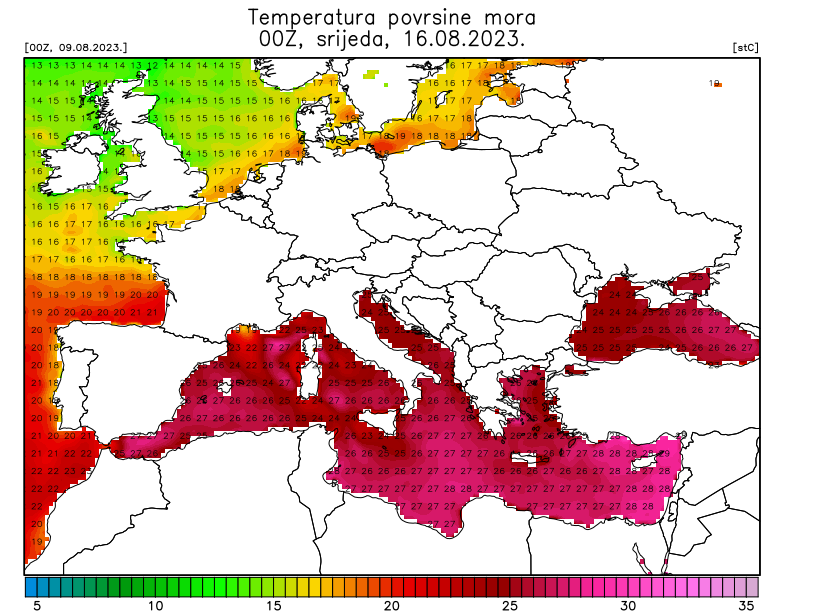 Nakon neuobičajene svježine u prvoj dekadi kolovoza, temperature zraka od subote posvuda će porasti malo iznad prosjeka za doba godine. Ipak, većih, naročito ekstremnih odstupanja koje bi mogle okarakterizirati kao toplinski val nema na vidiku.