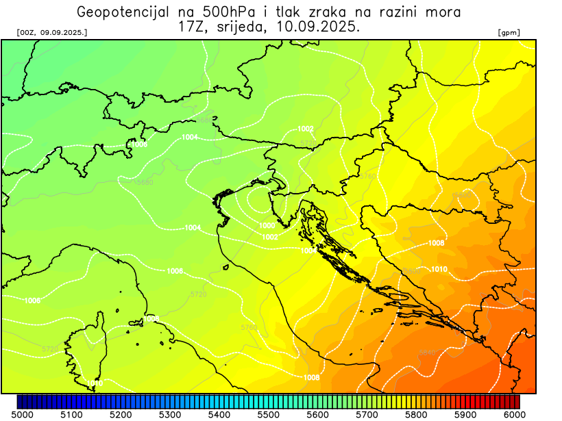 DHMZ je za srijedu za naše područje izdao visok narančasti stupanj meteorološkog upozorenja. Upozorenje se odnosi na mogućnost vrlo obilnih oborina (>70 mm), grmljavinskog nevremena (vjerojatnost grmljavine >80 %), i mjestimice jako jugo.