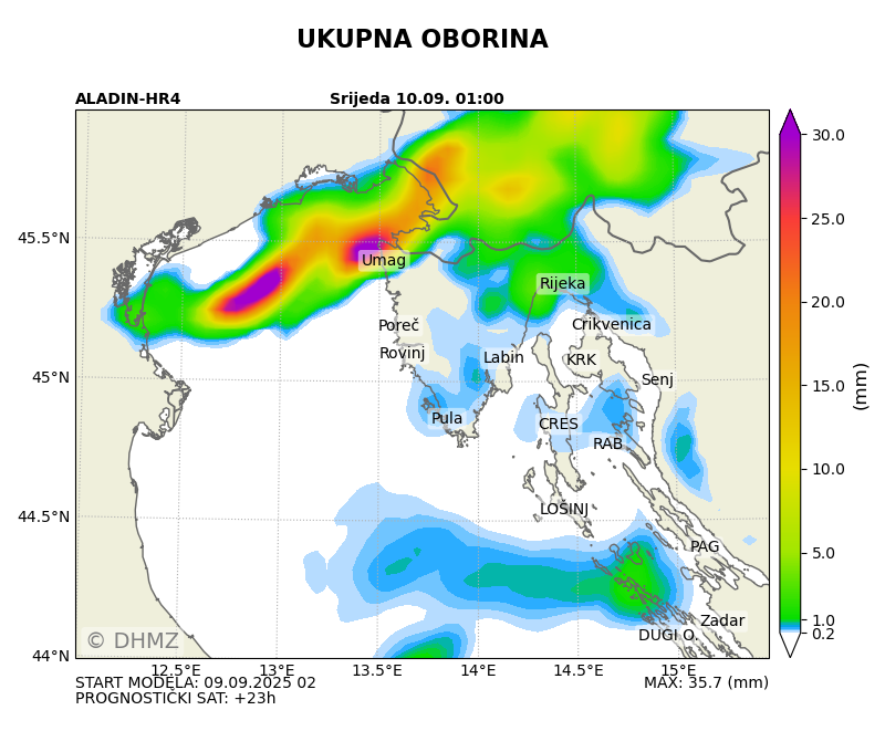 Tijekom utorka slijedi postupna destabilizacija atmosfere, a u noći na srijedu valja očekivati i prve lokalne grmljavinske pljuskove. Uvod je to u novu, snažnu promjenu vremena koja ponovno može donijeti ekstremno obilne oborine u kratkom vremenskom roku.