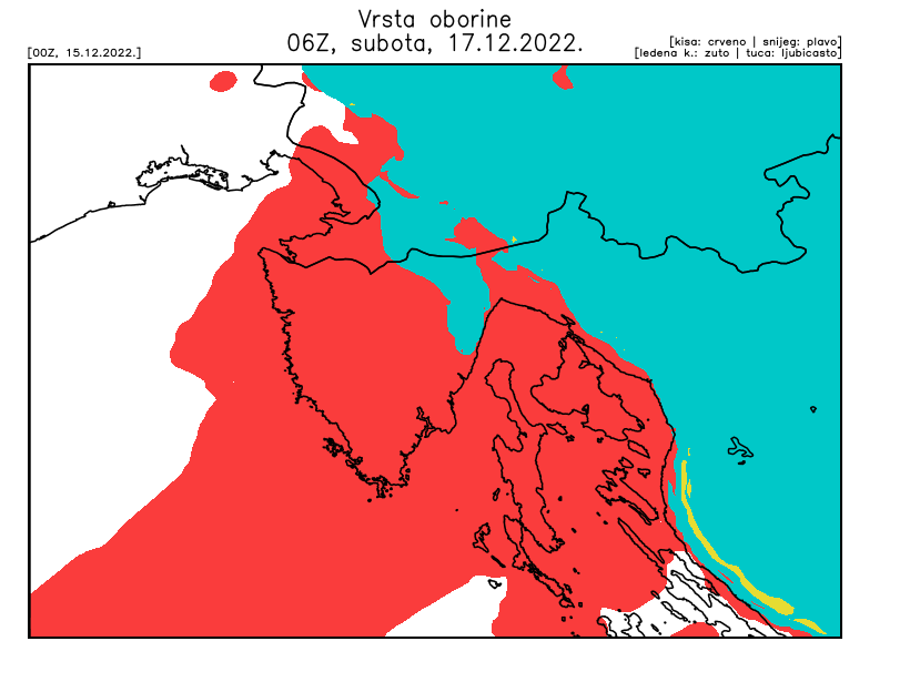 U noći na subotu kiša će u gorju naglo okrenuti na snijeg uz stvaranja snježnog pokrivača. U Gorskom kotaru očekujemo 10-15 centimetara, ponegdje i malo više, a vjerojatno će se zabijeliti i Učka te dio Ćićarije. Snijega može nakratko biti i u nekim nizinama središnje Hrvatske.