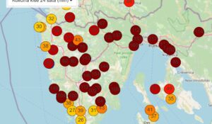 Najobilnije oborine sudeći prema meteorološkim kartama ponovno će pogoditi riječko zaleđe i Gorski kotar, međutim i drugdje može biti izraženijih pljuskova.