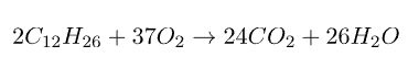 Iz prikazanog slijedi da će 2 molekule kerozina u reakciji s 37 molekula kisika dati kao produkt 24 molekule ugljičnog dioksida i 26 molekula vode. Budući da od samo dvije molekule kerozina (i mnogo kisika) dobijamo čak 24 molekule CO2 i 26 molekula vode, proizlazi velik nesrazmjer proizvedenog ugljičnog dioksida, koji ima mnogo veću masu od mase utrošenog goriva. Također je bitno primijetiti da iz ispušnog sustava mlaznog motora aviona izlazi velika količina vode, u plinovitom stanju.