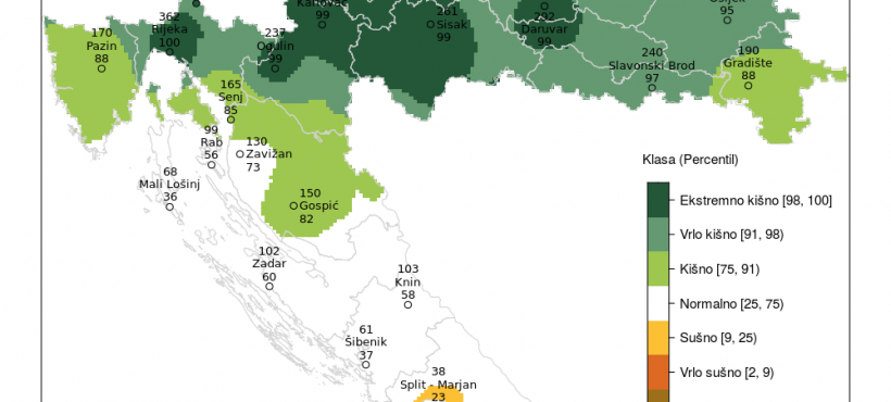 ekstremno kišno (šira okolica Daruvara, Varaždin, zapadni dio središnje Hrvatske, Parg, šira okolica Rijeke, Ploče).