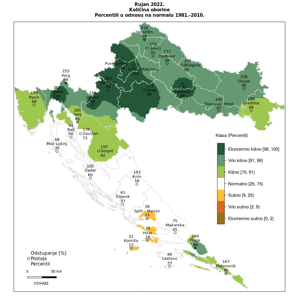 Oborinske prilike u Hrvatskoj u rujnu 2022. godine izražene percentilima detaljnije su opisane sljedećim kategorijama: