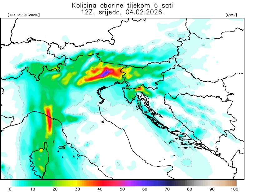 U subotu još može biti slabih oborina, naročito u Gorskom kotaru gdje će povremeno padati slab snijeg. Na ostatku područja jačat će bura, naročito navečer.