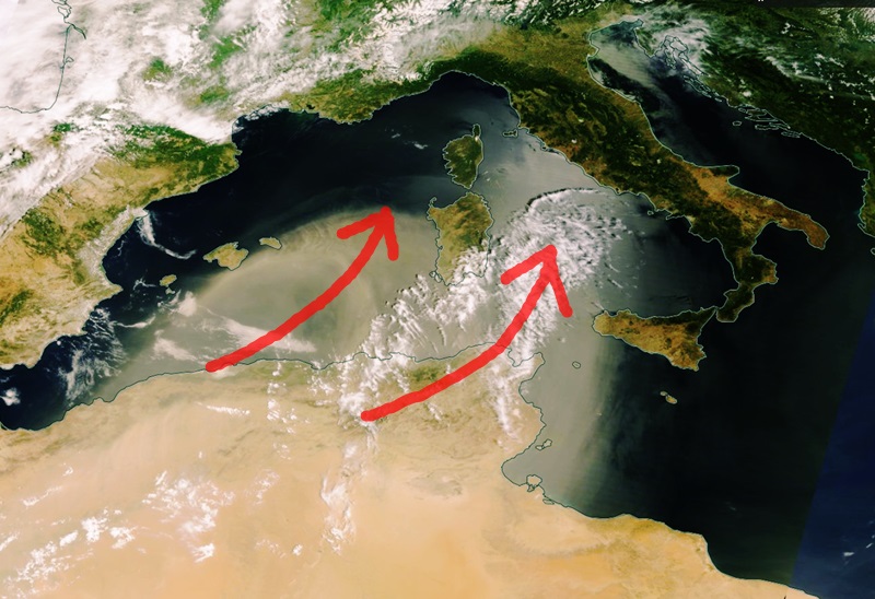 Snažni vjetrovi uz izražena vertikalna uzdizanja zraka uzrokovali su “zarobljavanje” sitnih čestica saharskog pijeska u atmosferi. Riječ je u uobičajenoj situaciji na prednjoj stranici ciklone koja se sada nalazi na Pirenejskom poluotoku, samo će ovog puta količina prašine ponovno biti daleko veća od uobičajenih vrijednosti.