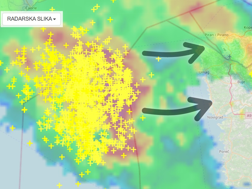 Nakon perioda vrućeg, pa i vrlo vrućeg ljetnog vremena, danas je nastupila nova velika destabilizacija atmosfere. Obilnija kiša pala je na velikom dijelu poluotoka, ali najviše na Bujštini, do 40 mm.