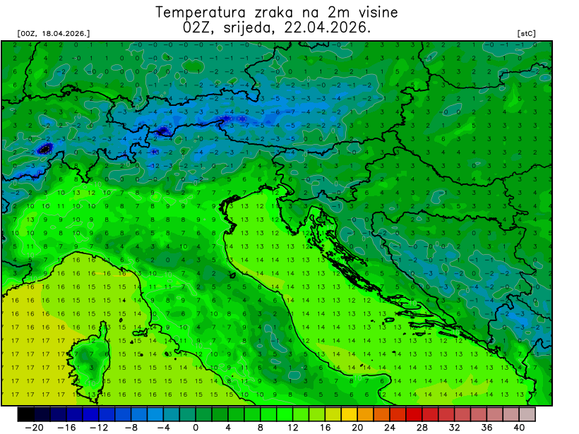 Temperature zraka osjetno će se sniziti, naročito u kontinentalnoj Hrvatskoj, dok se će na Jadranu zahladnjenje slabije osjetiti. Sredinom tjedna s razvedravanjem i zadržavanjem hladnijeg zraka, dijelove regije može pogoditi i slab mraz.