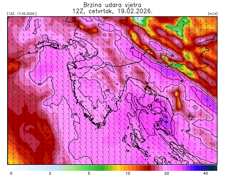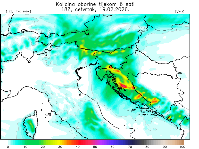 Pred nama je još jedna ozbiljnija kiša koja stiže u četvrtak. Nakon olujnog juga i jugozapadnjaka koje će puhati tijekom dana, u noći će s hladnom frontom zapuhati bura, dok će u gorju pasti snijeg. Međutim, izraženije zahladnjenje ne očekujemo.