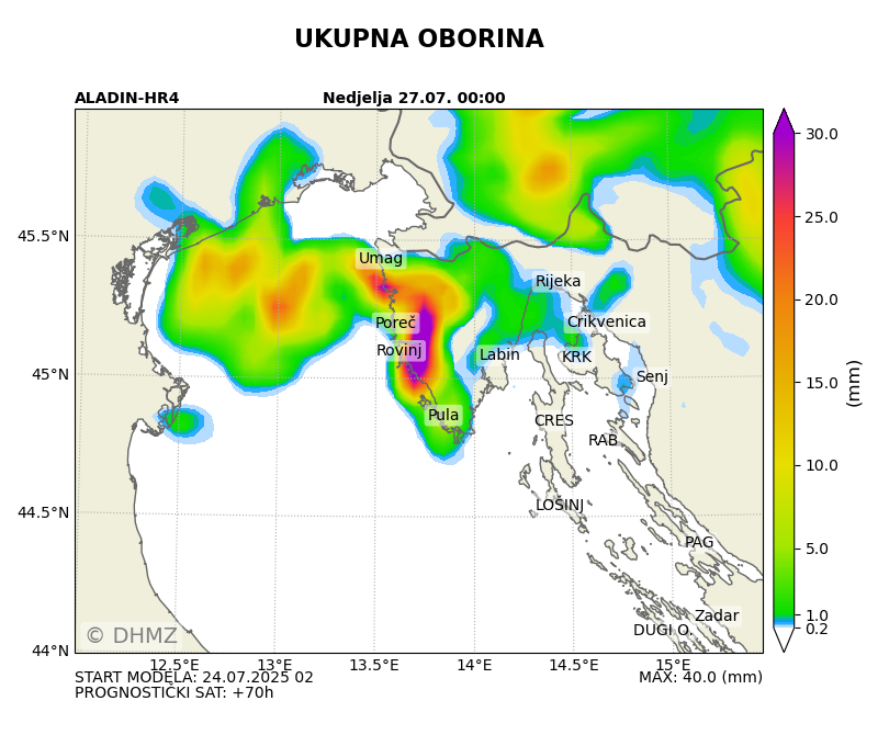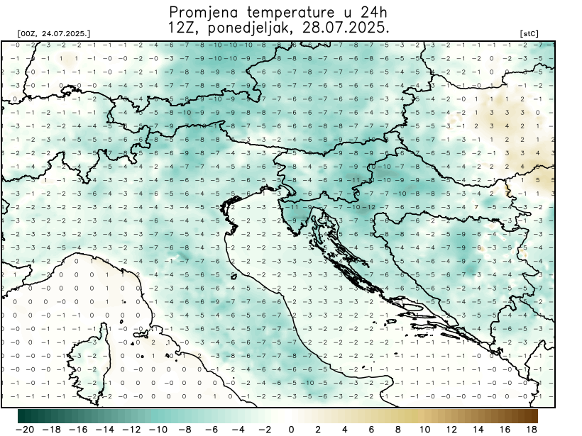 I prije glavnine promjene koja stiže početkom idućeg tjedna, očekujemo žestoke lokalne nestabilnosti u vidu grmljavinskih pljuskova, a ponegdje je moguće i jače nevrijeme, naročito u gorskom području. Međutim, ono pravo zahladnjenje stiže nam u ponedjeljak.