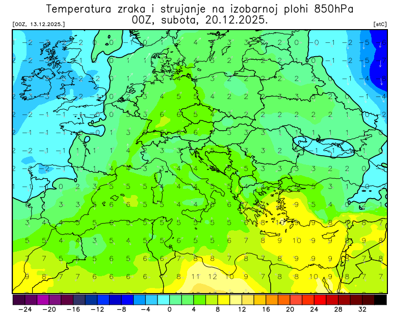 Atlantske ciklone nakon Božića konačno bi se mogle utišati, što bi omogućilo razvoj anticiklone i prodor značanije količine hladnog zraka na sjeveroistok Europe, što je prvi korak prema eventualnom dolasku hladnijeg vremena krajem godine i početkom siječnja. Držimo fige! (P.R./IM).