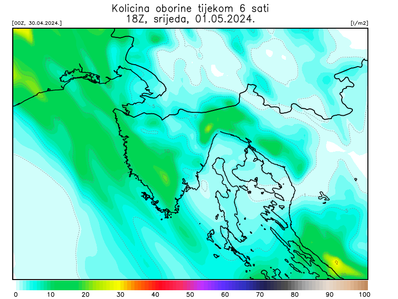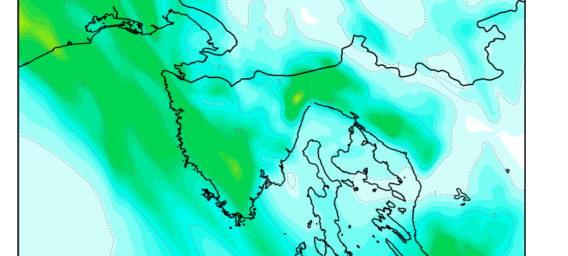 Kasno navečer diljem Istre i Kvarnera valja očekivati mjestimičnu kišu i lokalne grmljavinske pljuskove. Zapuhat će umjereno i jako jugo i jugozapadnjak.