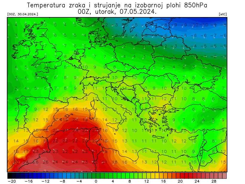 U subotu je izgledna stabilizacija vremena, a zatim od nedjelje slijedi pretežno sunčano i vrlo toplo proljetno vrijeme. Vrućine zasad našem dijelu Sredozemlja ne prijete, iako je sve izgledniji prodor vrlo tople afričke zračne mase prema Francuskoj. (P.R./IM).