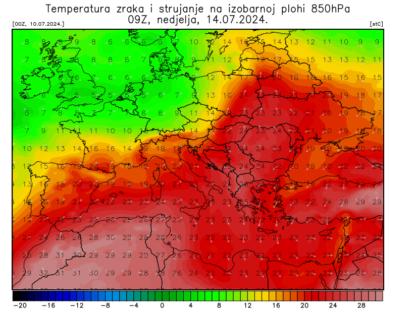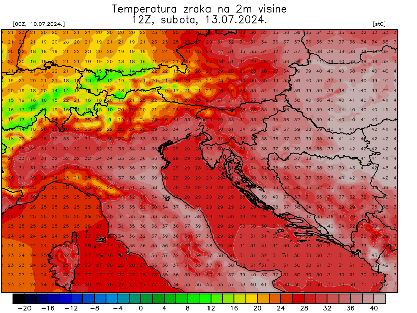 Vrlo vruće, a ponegdje i ekstremno vruće bit će u cijeloj regiji. Maksimalne temperature zraka na istoku Hrvatske i u Dalmatinskoj zagori penjat će se lokalno i iznad 40 °C, dok maksimalne vrijednosti u Istri u predstojećem razdoblju ne bi trebale prelaziti 39 °C.