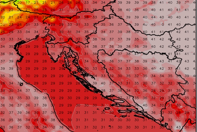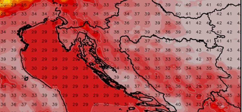 Vrlo vruće, a ponegdje i ekstremno vruće bit će u cijeloj regiji. Maksimalne temperature zraka na istoku Hrvatske i u Dalmatinskoj zagori penjat će se lokalno i iznad 40 °C, dok maksimalne vrijednosti u Istri u predstojećem razdoblju ne bi trebale prelaziti 39 °C.
