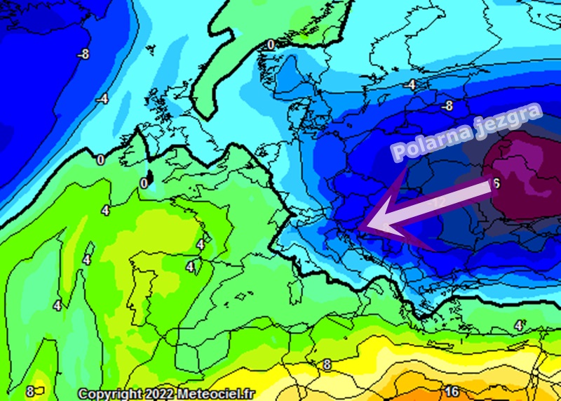 Većina modela suglasna je kako na istoku Europe slijedi gomilanje vrlo hladnog zraka. Temperature zraka na 850 hPa snizit će se ispod -16 °C, što je iznimna hladnoća za doba godine. Zrak je polarnog porijekla i stiže iz srca Sibira.