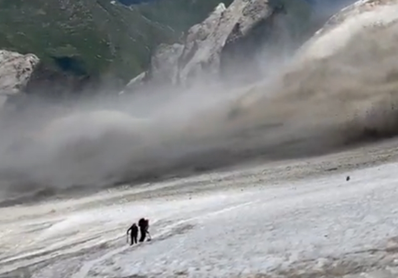 The footage of the large ice avalanche in Marmolada today in close proximity.