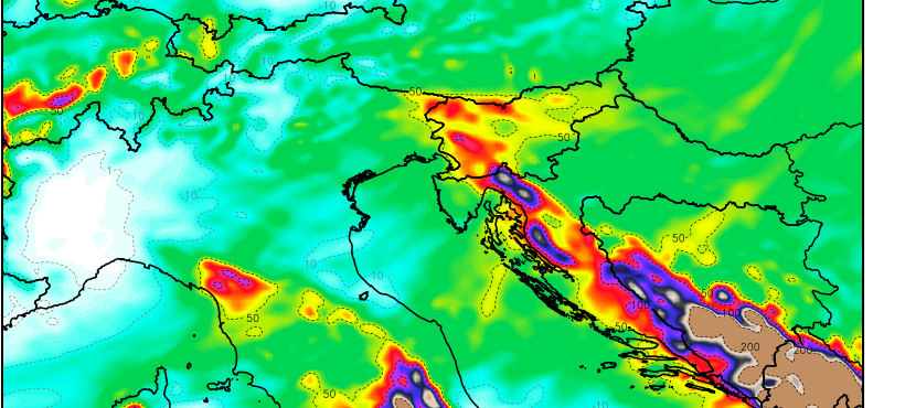 Prema modelima, dijelove regije očekuju ekstremne oborine koje bi mogle uzrokovati lokalna plavljenja, što se dobro vidi na priloženom videu. Gledajući ukupnu sumu oborina, skala od 200 mm za dio područja lako je probijena.
