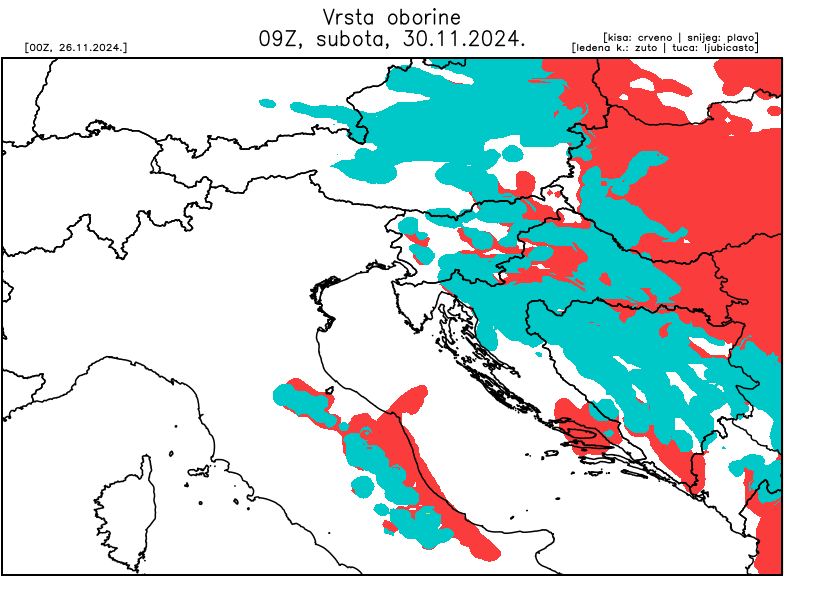 Uslijed kruženja vlažnijeg zraka u sklopu razvoja visinske ciklone, u gorskom području povremeno će padati snijeg, a manje količine moguće su povremeno i u nekim nizinama unutrašnjosti Hrvatske. Temperature zraka u kopnenom području bit će prave zimske. Oborine će prema svemu sudeći izdašnije biti u BiH i Srbiji, nego li u Hrvatskoj.