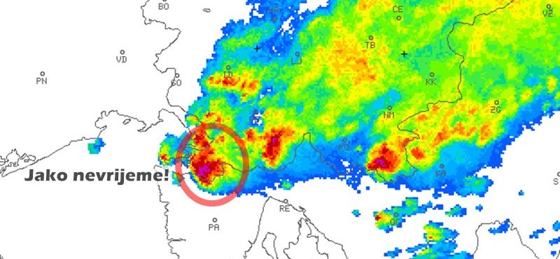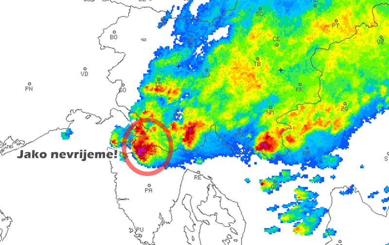 Žestoka fronta uz olujan nalet vjetra, silovitu kišu, a ponegdje i tuču te iznimno snažnu grmljavinsku aktivnost upravo prolazi sjeverom Istre.